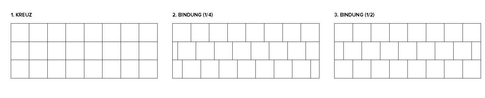 Die Verlegung kann aber auch auf andere Weise im Hinblick auf die von Ihnen beabsichtigte Anordnung der Fugen zwischen den Fliesen ästhetisch geeignet erfolgen.