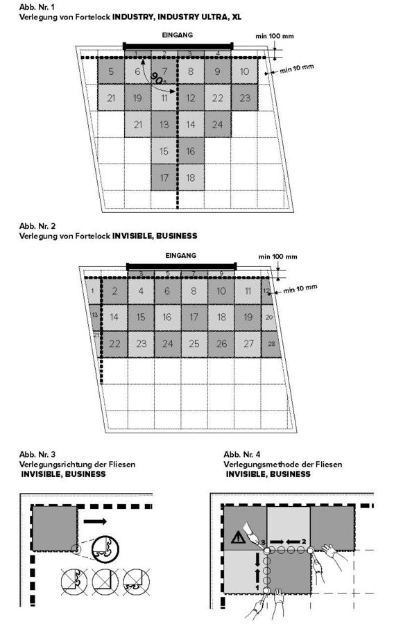 7. BEISPIELE FÜR DIE VERLEGUNG DER FLIESEN FORTELOCK INVISIBLE, BUSINESS