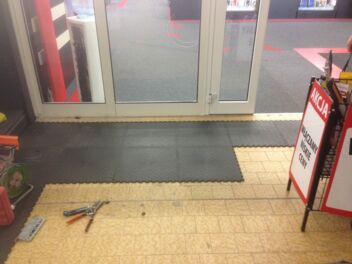 Die neuen PVC Fliesen wurden auf dem ursprünglichen Fliesenboden verlegt, der stark abgenutzt war und nicht den visuellen Ansprüchen genügte. Die gesamte Sanierung erfolgte während der Geschäftszeiten und ohne unnötige Verzögerungen, die die Kunden und den Betrieb des Geschäftes gestört hätten.