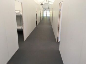 Die Fliesen Fortelock Light eignen sich für verschiedene Räumlichkeiten. Dies beweist auch die Tatsache, dass in einem Flüchtlingslager in Deutschland mehr als 6 300 m² Bodenbelag verlegt wurden. Dank der durchdachten Struktur der Zusammensetzung und Konstruktion war die Verlegung wirklich sehr schnell und der Boden konnte sofort genutzt werden. Deshalb sind die Bewohner dieser vorübergehenden Unterkunft vor Feuchtigkeit und Kälte, die vom Boden ausgehen, geschützt. Der Boden hält hohen Belastungen stand und entspricht den hygienischen Anforderungen, da er einfach zu reinigen ist.
