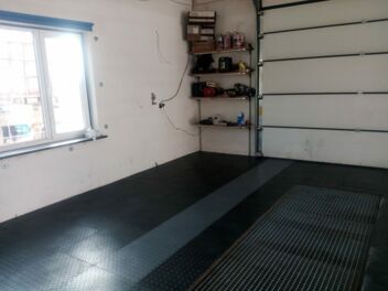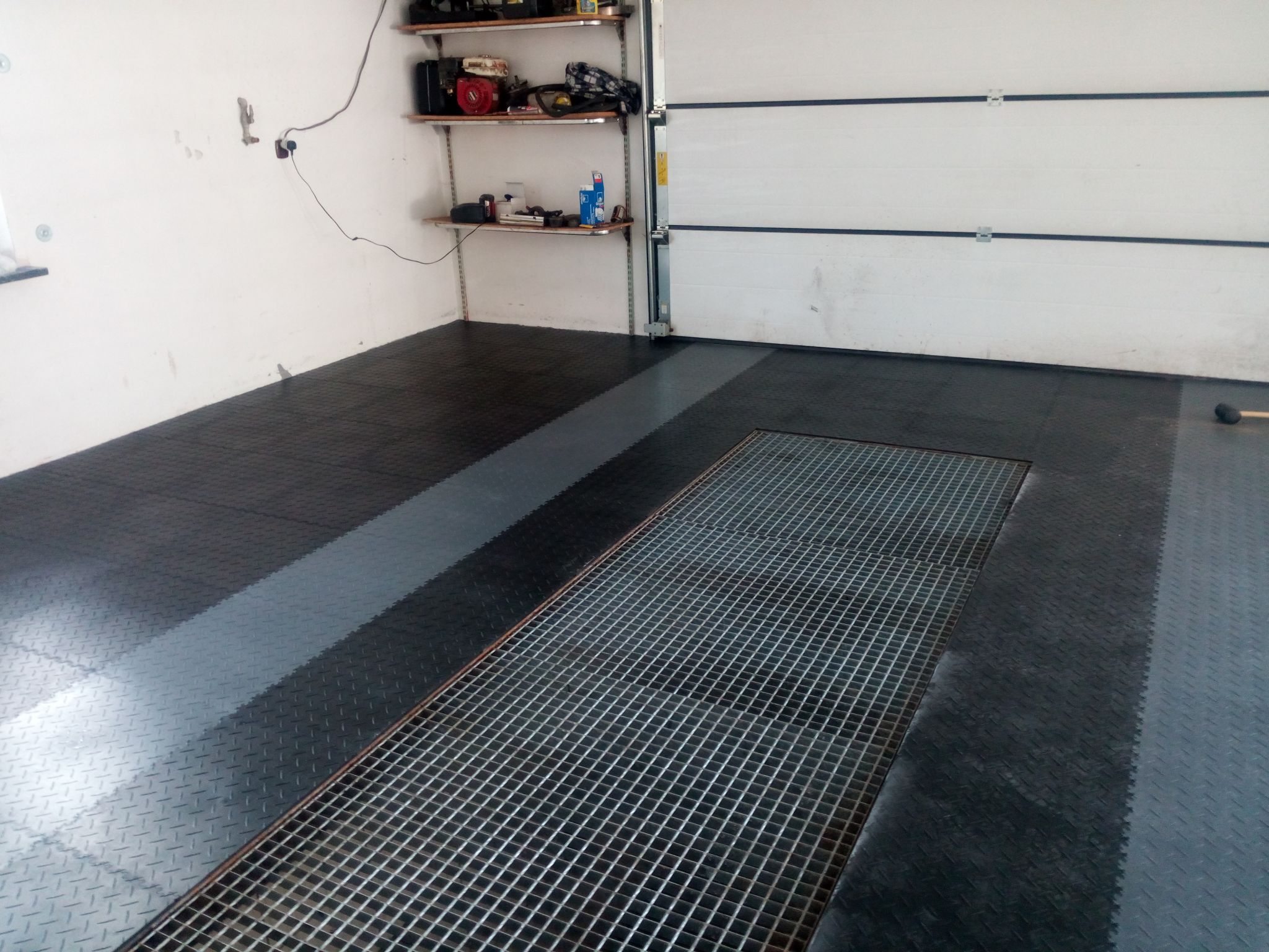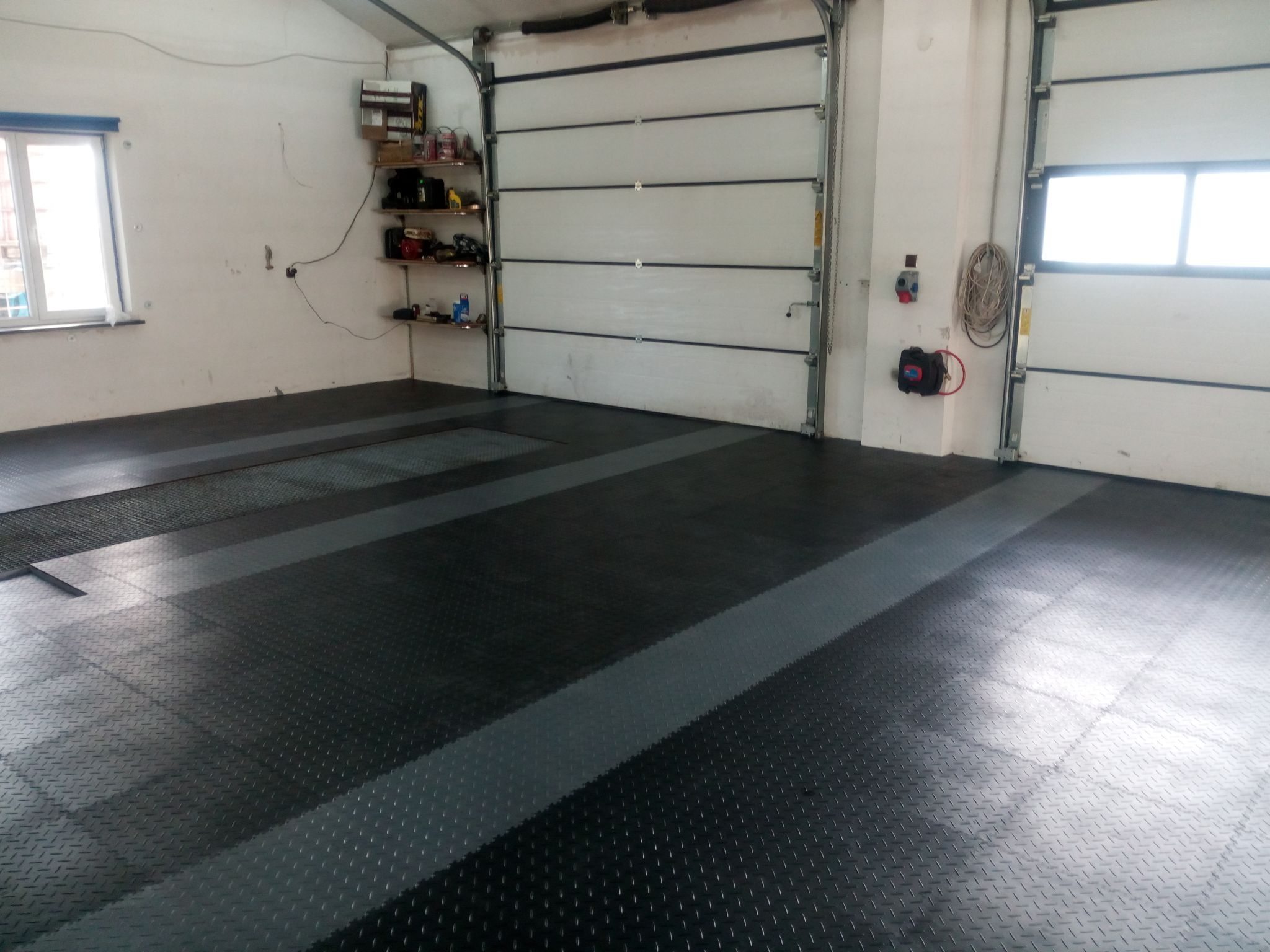 Bei der Fußbodenrenovierung wurden PVC-Fliesen Fortelock in schwarzer (Black) und grauer (Grey) Farbe benutzt. Der Fußboden in Autowerkstätten ist sehr häufig hohen Belastungen ausgesetzt, es fließen Betriebsflüssigkeiten aus und das Werkzeug fällt hinunter. Deshalb ist es zweifelsfrei vorteilhaft, dass bei diesem Fliesensystem ohne Notwendigkeit, den ganzen Fußboden zu reparieren, einzelne, beschädigte Fliesen ausgewechselt werden können. So können die Instandhaltungskosten bedeutend gesenkt werden.