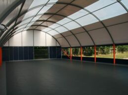 Die Entscheidung, welcher Boden in einer Mehrzwecksporthalle verlegt werden sollte, ist auf die PVC Fliesen Fortelock Industry für hohe Belastungen gefallen. Vor allem dank der festen Verbindung durch das Klick-Systems der einzelnen Fliesen, welches perfekt ineinander greift. Daher ist der Boden nicht nur für Sprünge, Laufen, Dribbeln mit Bällen, sondern auch für weitere Sportaktivitäten bestens geeignet. Der Boden ist einfach zu pflegen und aus hygienischer Sicht unbedenklich. Verschüttete Getränke und Körperschweiß können dem Bodenbelag nichts anhaben. Dieser war innerhalb von wenigen Tagen verlegt.