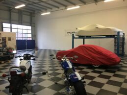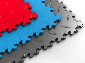 Die beiden Fortelock Easyclick Varianten sind bestens für Garagen gegeigent. Die Easyclick Industry Fliese wurde überall da verlegt wo große Belastungen auftreten (Hebebühne, Auto), auf dem Rest des Bodens wurde die Easyclick Light Fliese verlegt. Da die Fliese in sieben verschiedenen Farben erhältlich ist können kreative Muster, wie hier das stilvolle Schachbrettmuster, gelegt werden.