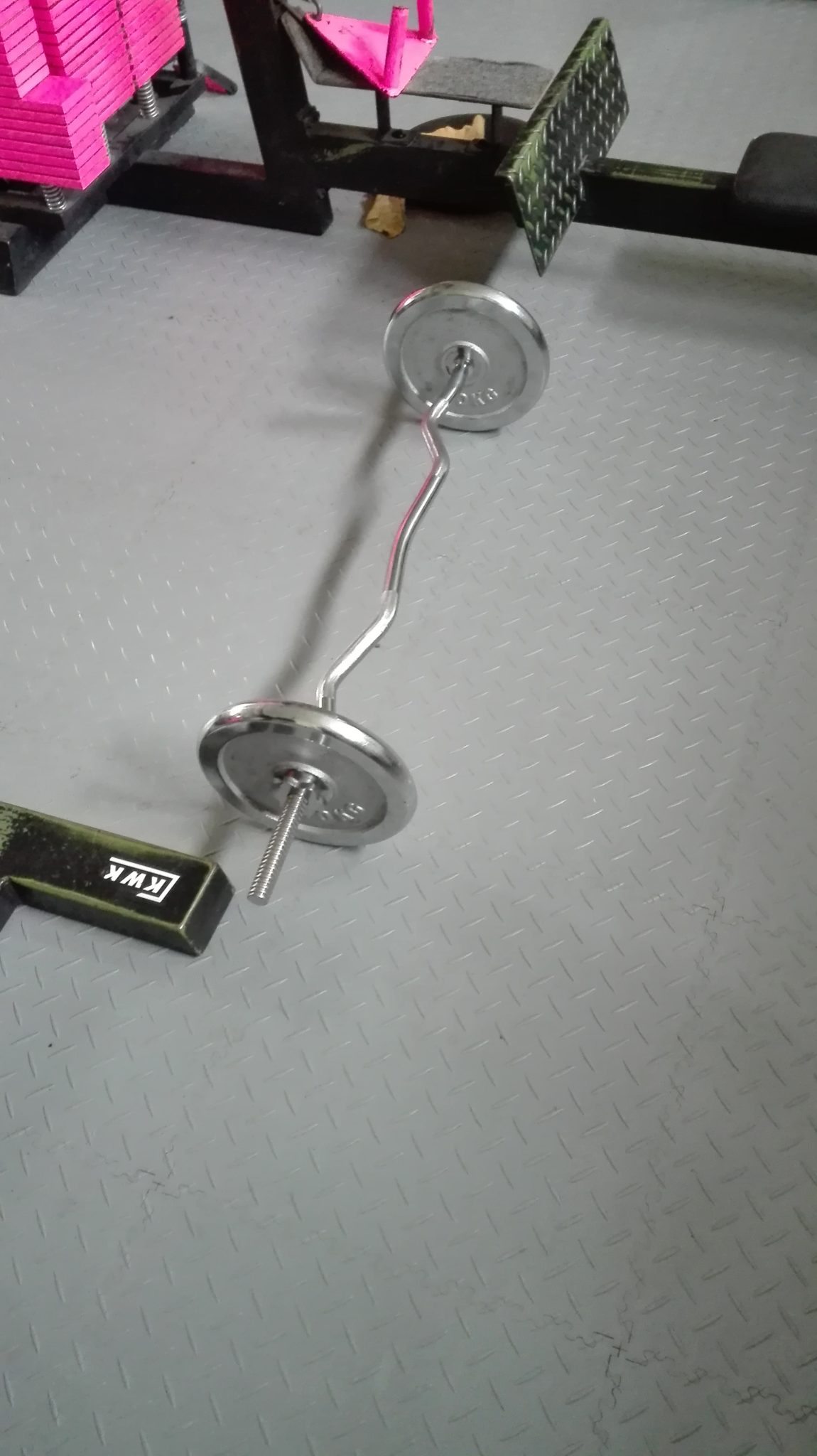 Den Boden im Kraftraum haben wir selbst gemacht. Unser Wartungspersonal hat den alten Belastungsteppich durch graue PVC Fliesen ersetzt. Der Grund für die Entscheidung, den Boden zu erneuern, waren vor allem einfachere Reinigung, geringe Staubbildung und langsamere Abnutzung des Bodens. Auch nach einigen Jahren haben wir gegen den Boden keine Einwände.